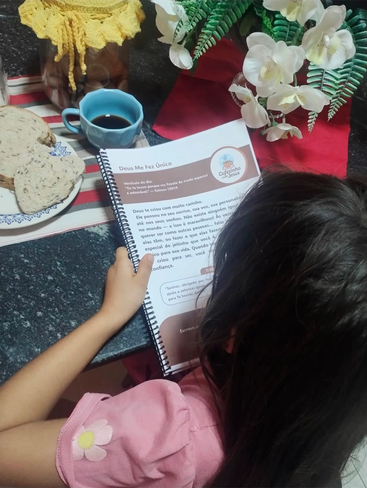 Com versões especiais para 2–5 e 6–10 anos, o Cafézinho com Jesus torna o momento devocional simples, leve e cheio de significado para todas as crianças e famílias.